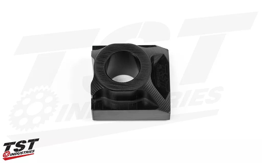 No need to saw or grind that ugly swingarm fender off! Simply remove it and install the TST Industries Axle Block for a clean look with an installation that doesn't include a hack saw!