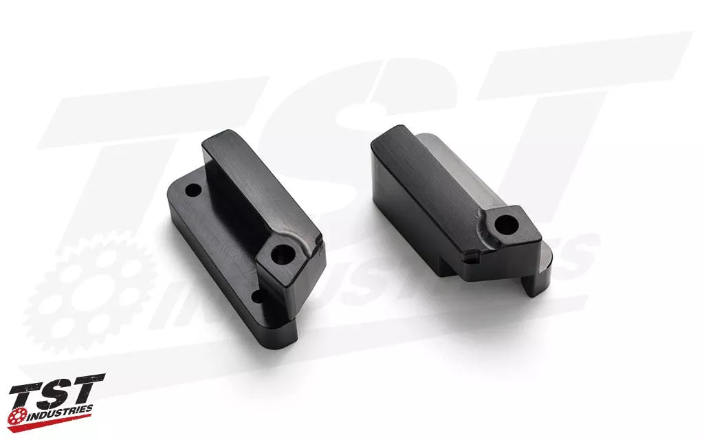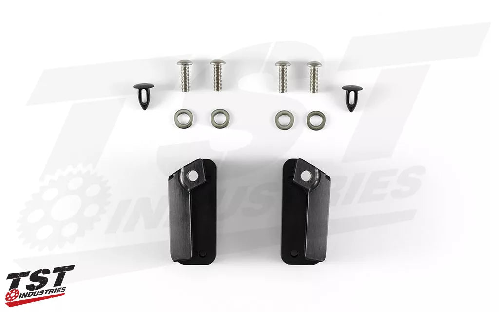After removing the stock signals from the 2017-2020 MT09, you're left with two holes on the undertail that can potentially allow water, debris, and general road dirt to enter the subtray of your MT-09. That's why TST developed the exclusive CNC machined undertail closeout. They fit directly within the gap left behind and fill the holes with a precise fit and easy install. They feature a durable black anodized finish and includes all necessary hardware required for installation.